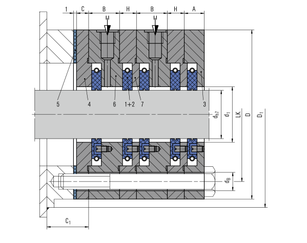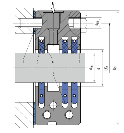 碳環(huán)密封的結(jié)構(gòu)包括環(huán)形密封腔體和環(huán)形軸套,迷宮密封和浮環(huán)密封相結(jié)合的一種密封結(jié)構(gòu),是一種利用密封碳環(huán)自身的潤滑性,通過非接觸式密封來實現(xiàn)高效密封技術(shù),密封腔體內(nèi)有環(huán)形槽,槽內(nèi)至少裝有二個截面為矩形的環(huán)形石墨密封環(huán),石墨密封環(huán)的內(nèi)徑與環(huán)形軸套之間有0.01~0.04mm的間隙,軸套外表面涂有耐磨層,涂層材料一般為三氧化二鋁或氧化二鉻。碳環(huán)密封有時需要增加隔離氣,主要應(yīng)用于密封易燃有毒介質(zhì)。碳環(huán)密封由于操作維修簡單,密封性好,得到廣泛的應(yīng)用。裝配結(jié)構(gòu):整體式和部分式應(yīng)用設(shè)備:汽輪機、風(fēng)機、發(fā)電機、壓縮機、透平機等機組。