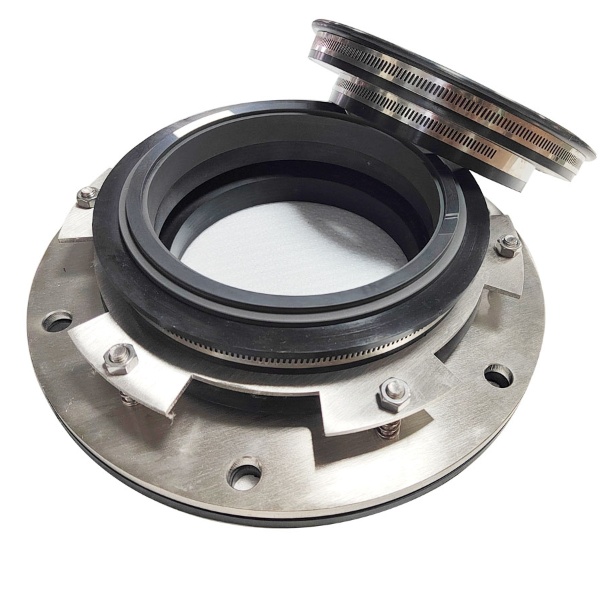沉沒輥機械密封,屬機械密封設(shè)備技術(shù)領(lǐng)域;包括整體呈圓形的止動裝置本體,所述止動裝置本體為由兩個圓弧體對接裝配而成,對接平面開有與其垂直的徑向螺栓孔,其中裝配徑向螺栓;止動裝置本體周向等距開設(shè)軸向螺栓孔,其中裝配軸向螺栓;本實用新型無需調(diào)整機械密封,通過徑向螺栓和軸向預(yù)緊螺栓的配合調(diào)節(jié),可使動密封和靜密封實現(xiàn)良好密封。