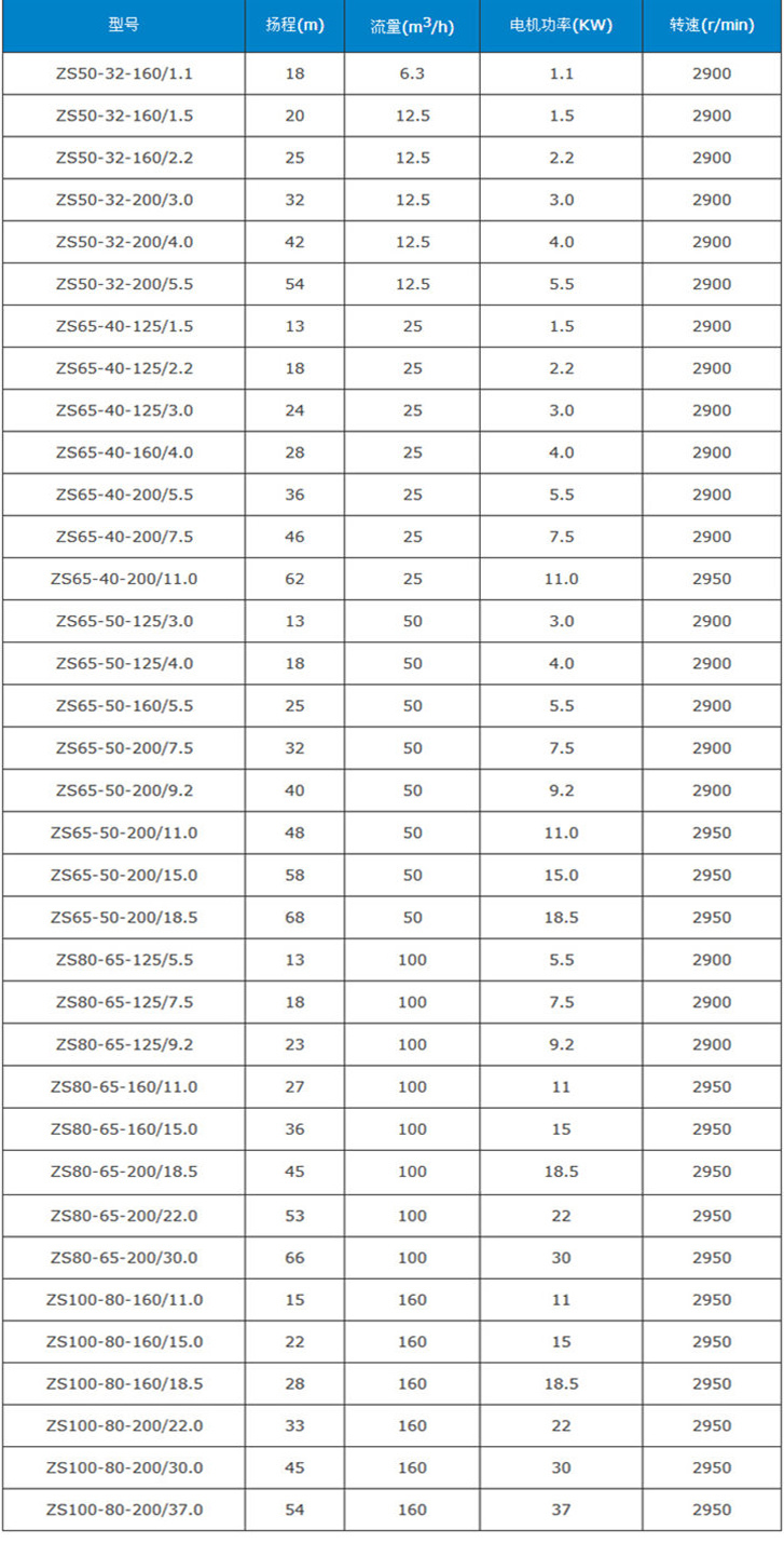 南方水泵系列技術(shù)參數(shù)如下: